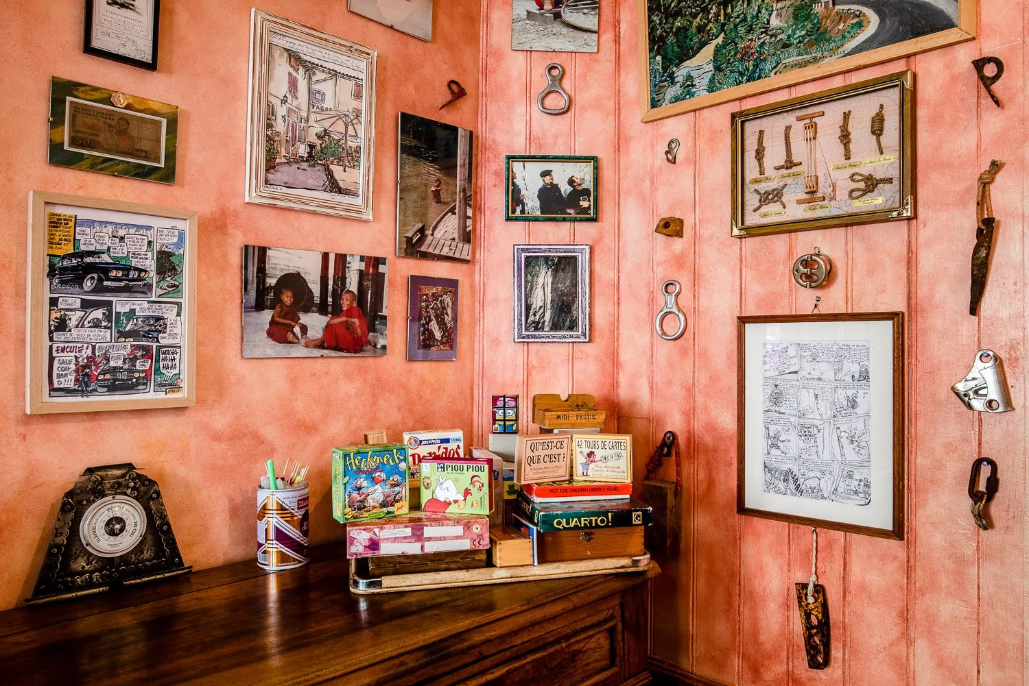 Niveau 2: Cuisine, bibliothèque, nombreux jeux de société. Grand tableau d’école qui fera le bonheur des petits et des grands.