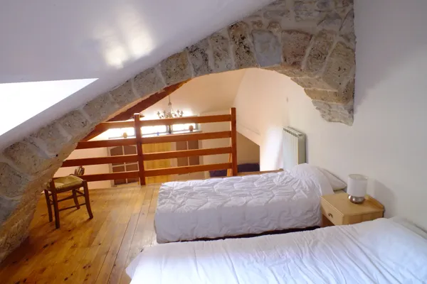 En mezzanine la chambre de 15 m² et salle d’eau (douche, WC).
